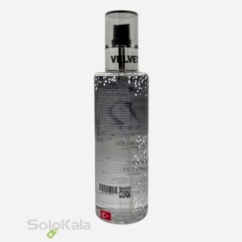 برند Velvet ترکیه برای تضمین کیفیت، از بهترین اسانس‌های سوئیسی در این محصول استفاده کرده است که نتیجه آن ماندگاری و پخش بوی بسیار بالا است. علاوه بر خوشبوکنندگی، وجود ویتامین E و روغن آرگان در ترکیبات آن، پوست شما را آبرسانی کرده و لطافتی ماندگار به آن می‌بخشد. همچنین ویژگی بدون لک بودن این بادی اسپلش به شما اجازه می‌دهد با خیالی آسوده آن را روی پوست یا لباس خود اسپری کنید و در هر لحظه، بدرخشید.