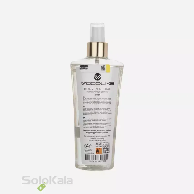 بادی اسپلش زین وودلایک یک محصول خوشبو کننده و رطوبت‌رسان برای خانم‌هاست. این اسپری با رایحه‌ای شیرین و خنک و ترکیبی از میوه‌ها (نارنج، گریپ فروت، پرتقال، آناناس، سیب)، گل‌ها (گل رز، گاردنیا، بنفشه، زنبق دره، نیلوفر) و رایحه‌های چوبی، حس طراوت و شادابی را به شما هدیه می‌دهد.