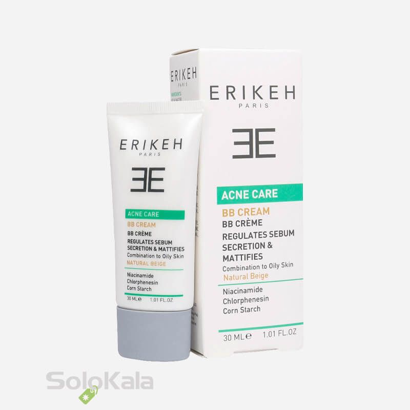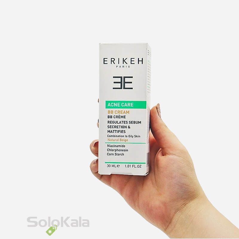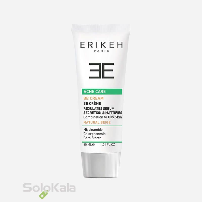 بی بی کرم بژ طبیعی اریکه مناسب پوست مختلط تا چرب است. این محصول منافذ باز پوست را جمع کرده و نواقص صورت را می‌پوشاند. بی بی کرم ضد آکنه اریکه حاوی نیاسینامید بوده و باکتری‌های مولد جوش و آکنه را از بین می‌برد. نیاسینامید یا همان ویتامین B۳ موجود در این محصول تولید کلاژن در پوست را نیز افزایش داده و روند پیری پوست را کند می‌کند. این ویتامین لک‌های پوست و قرمزی را از بین می‌برد و از پوست در برابر اشعه‌های مضر خورشید محافظت می‌نماید. همچنین این محصول براقی پوست را رفع نموده و عملکرد سد دفاعی پوست را تقویت می‌کند. بی بی کرم پوست چرب اریکه حاوی کلرفنزین و نشاسته ذرت بوده و غدد ترشح چربی را کنترل می‌کند.