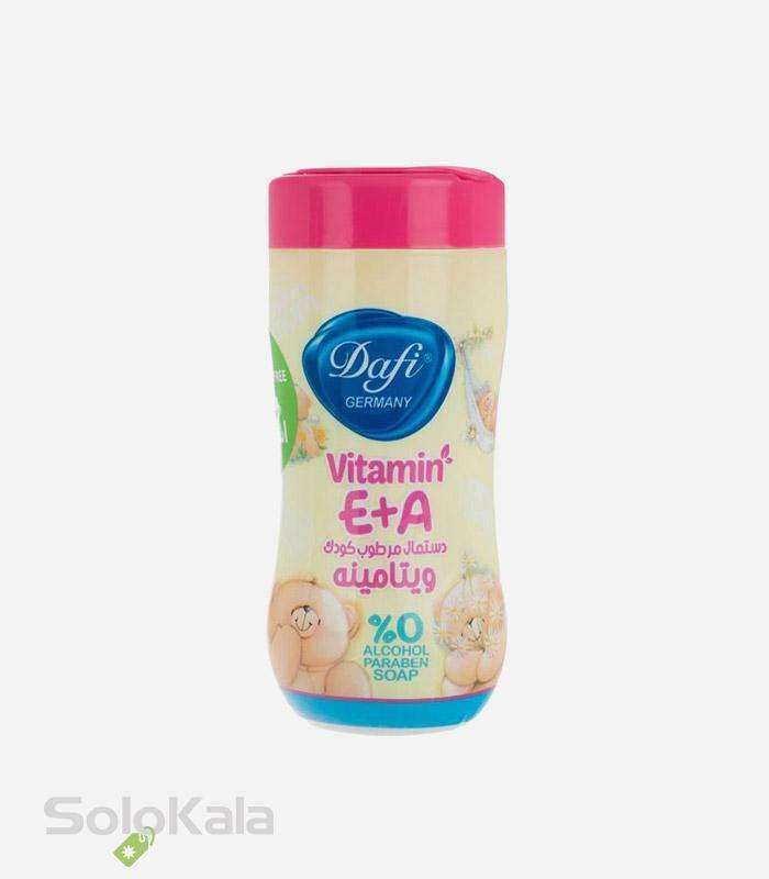 دستمال مرطوب کودک دافی، غنی شده با انواع ویتامین ها، بدون هرگونه افزودنی شیمیایی اعم از عطر، اسانس، الکل و پارابن است که موجب حفاظت از پوست کودک در برابر التهاب و ایجاد بیشترین حد از لطافت و نرمی می‌گردد. از ویژگی های این محصول می توان به پاک کننده ملایم، تغذیه فوق العاده پوست با مواد مورد نیاز، نرم کننده و لطافت دهنده و رفع آلرژی و هرگونه واکنش غیرطبیعی مثل قرمزی و التهاب اشاره کرد.