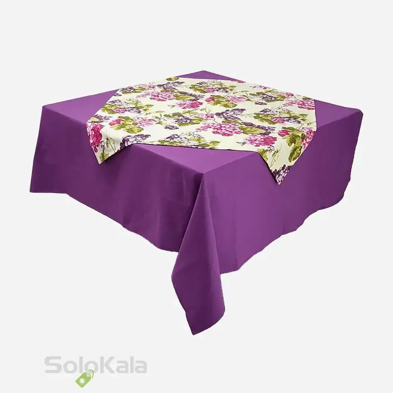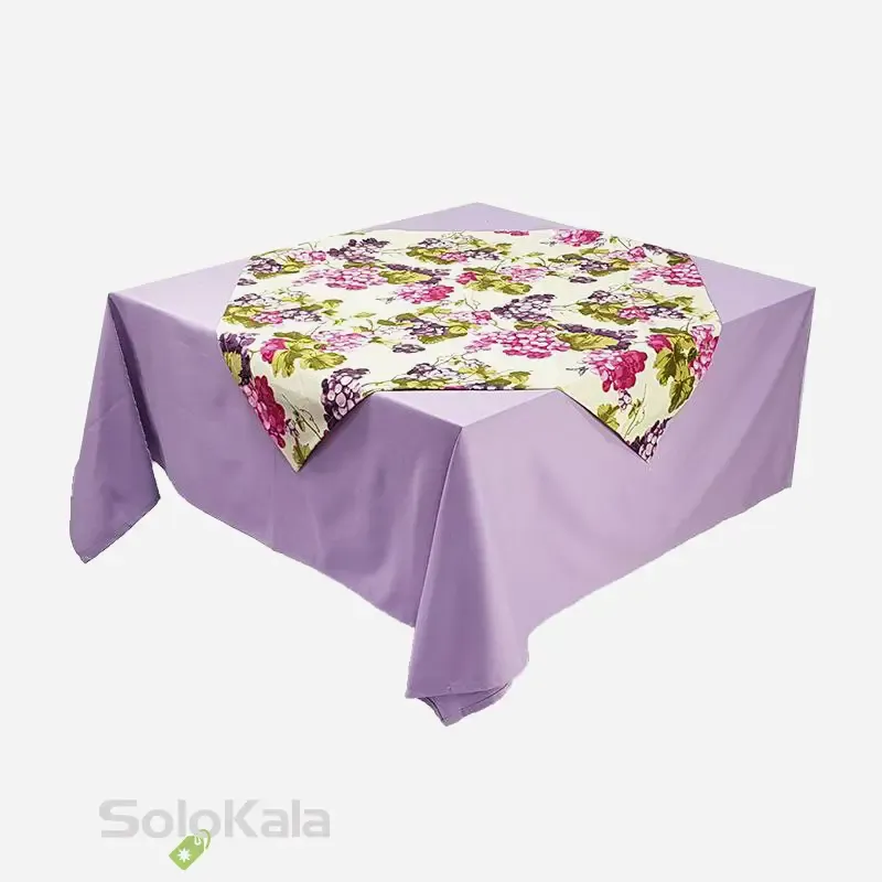 • طرح و رنگ رومیزی: یاسی، بنفش و گلبهی