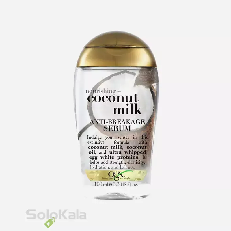 سرم مو او جی ایکس مدل کوکونات میلک با ترکیبات طبیعی همچون شیر نارگیل، پروتئین تخم مرغ و روغن نارگیل، موهای خشک و آسیب دیده را ترمیم و احیا می‌کند. این سرم مغذی و مرطوب‌کننده، با تغذیه عمیق مو، خشکی، وز و شکنندگی را از بین برده و درخشندگی و لطافت را به موها باز می‌گرداند. فاقد مواد مضر مانند پارابن و سیلیکون بوده و برای استفاده روزانه مناسب است.