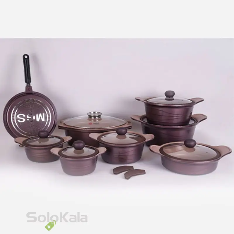 • تنوع قطعات: این سرویس شامل انواع قابلمه، تابه، و لوازم جانبی است که برای پخت انواع غذاها مناسب است.