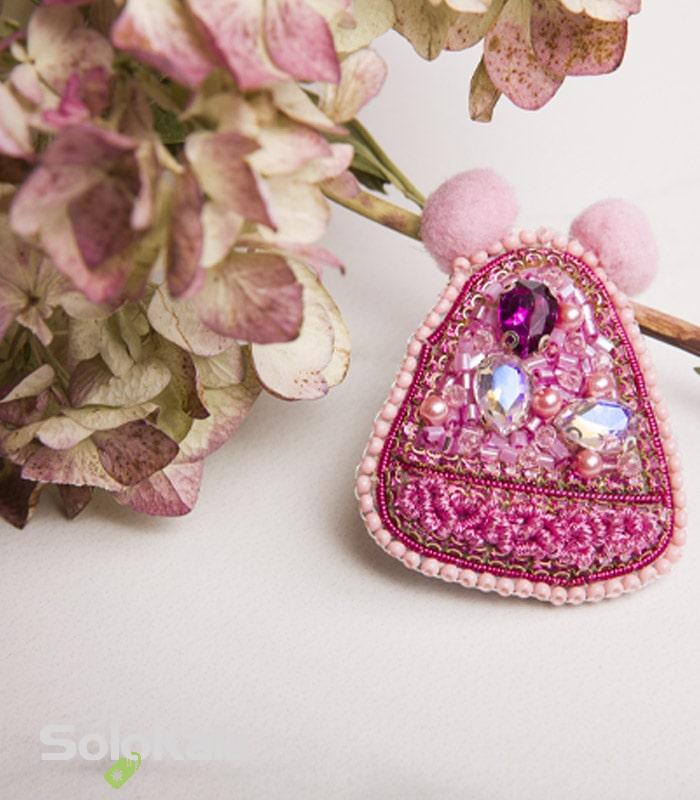 معرفی سنجاق سینه دست دوزی شده طرح کلاه صورتی