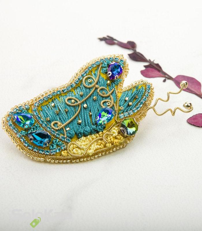 معرفی سنجاق سینه دست دوزی شده طرح پروانه گلدوزی