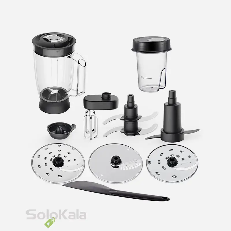 • قطعات جانبی متنوع: این دستگاه همراه با مجموعه کاملی از قطعات جانبی عرضه می‌شود که به شما امکان می‌دهد انواع مختلف مواد غذایی را پردازش کنید.