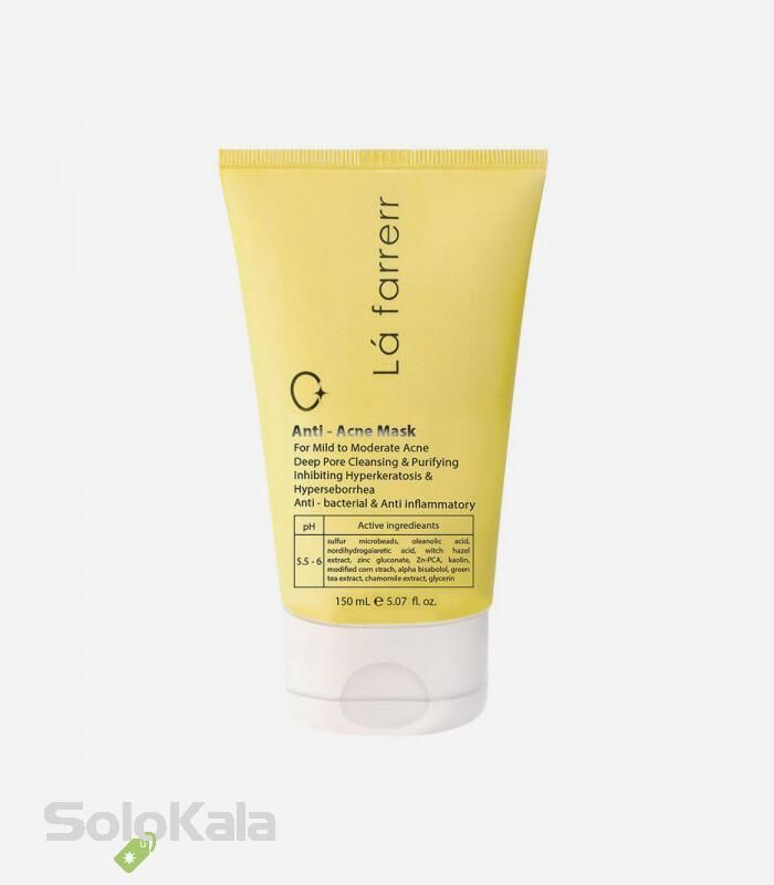 ماسک ضد آکنه حجم 150 سی سی یک محصول از برند معروف lafarrerr می‌باشد که حاوی عصاره‌های گیاهی هاماملیس، چای سبز، بابونه، نشاسته ذرت اصلاح شده و مواد موثر گوگرد، کائولین و زینک پی سی آ می باشد. محصول ماسک ضد آکنه لافارر با فرمولاسیون جدید و منحصر به فرد  به منظور رفع آکنه‌های خفیف تا متوسط طراحی شده است.این محصول با از بین بردن آکنه در مدت زمان کوتاه می‌تواند به عنوان محصولی رقابتی با محصولات مشابه خودنمایی کند.