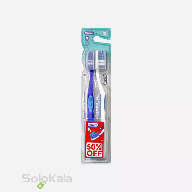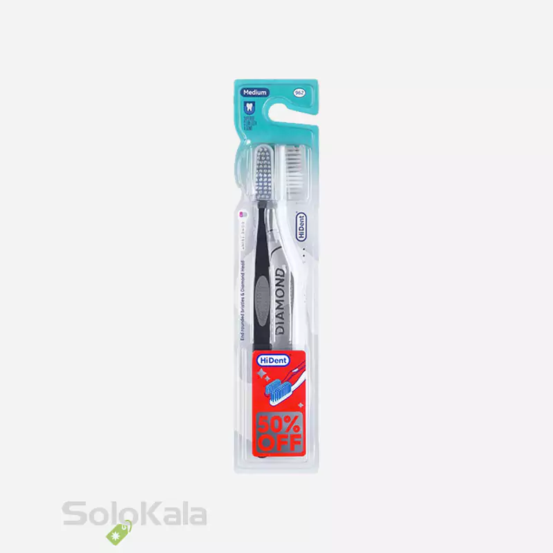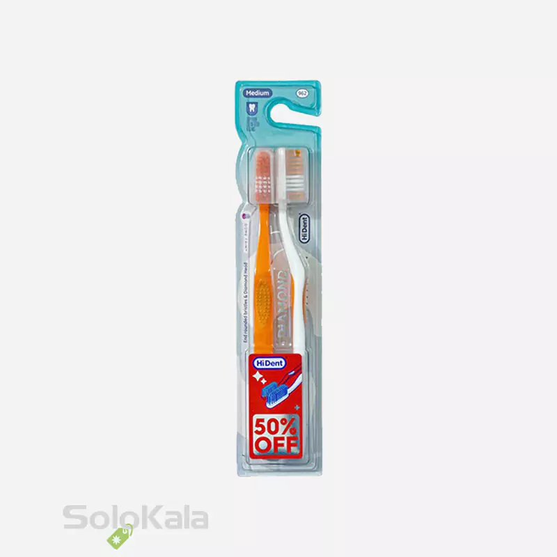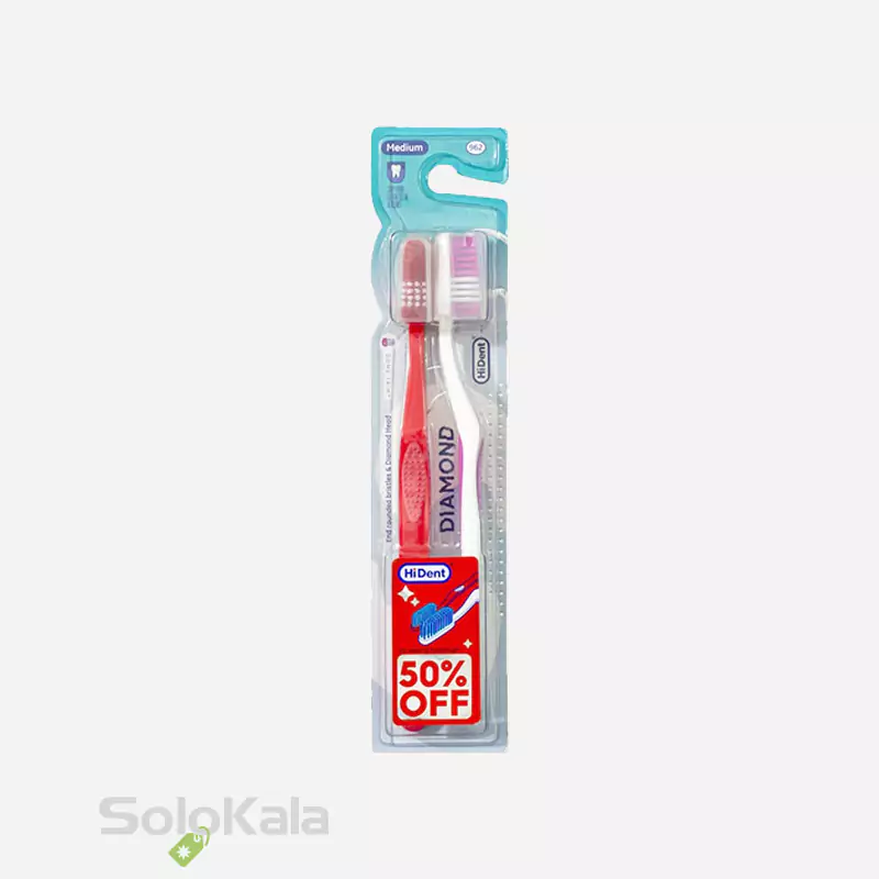 مسواک هایدنت مدل دیاموند 2 عددی قاب دار کد 962 با برس متوسط