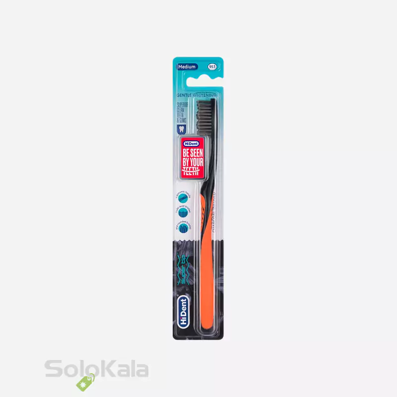 معرفی مسواک هایدنت مدل سوپر تیپ ذغالی قاب دار کد 953 با برس متوسط