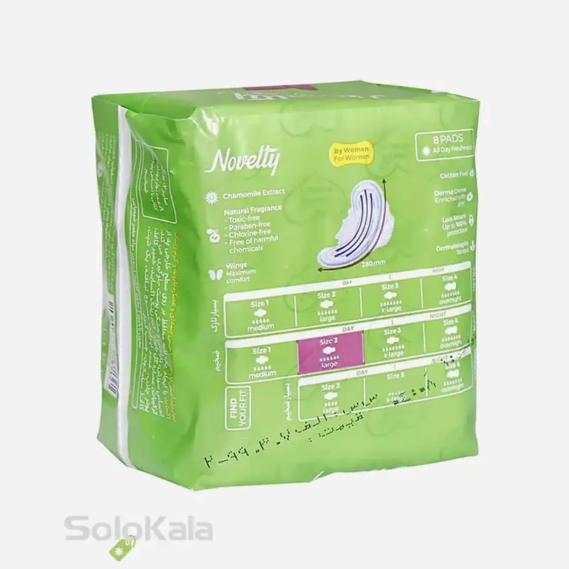 • نوار بهداشتی ضخیم ناولتی با عصاره بابونه برای استفاده در طول روز، مخصوص خانم هایی با خونریزی زیاد یا کسانی که به دنبال حس امنیت بیشتر هستند، ایده‌آل است.