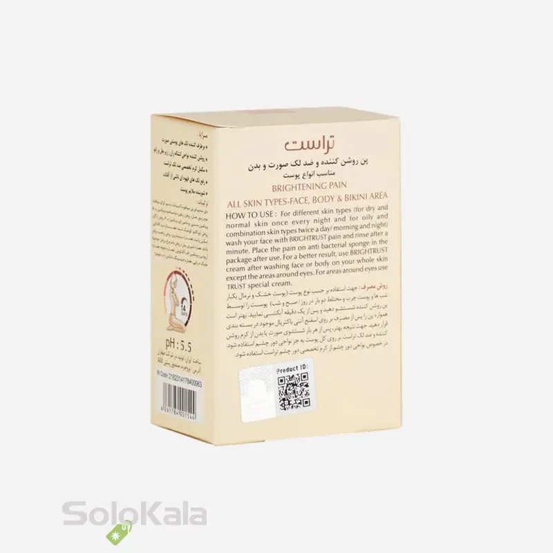 پن روشن کننده و ضد لک تراست، انتخابی ایده‌آل برای انواع پوست است که به‌طور همزمان پاک‌سازی و روشن‌سازی پوست را انجام می‌دهد. پن روشن کننده و ضد لک صورت و بدن تراست با ترکیبات موثر ضد لک، به کاهش تیرگی‌ها و لکه‌های پوستی کمک کرده و پوستی شفاف و یکدست به ارمغان می‌آورد. پن روشن کننده و ضد لک صورت و بدن تراست بدون ایجاد خشکی و تحریک، به‌عنوان یک شوینده ملایم و درمانی، برای صورت و بدن مناسب بوده و پوستی درخشان و سالم را برای شما به همراه می‌آورد.