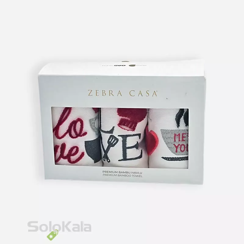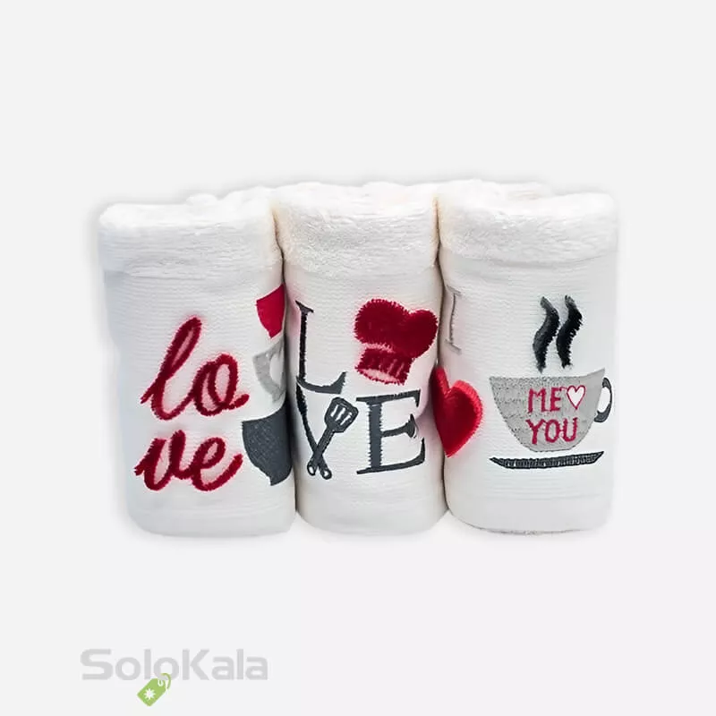 پک سه تایی حوله بامبو گل برجسته تاچ مدل لاو