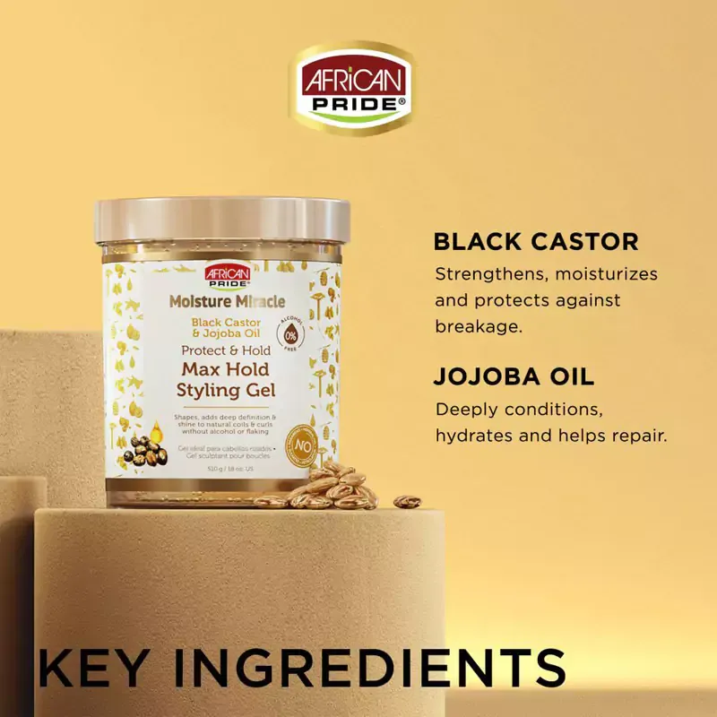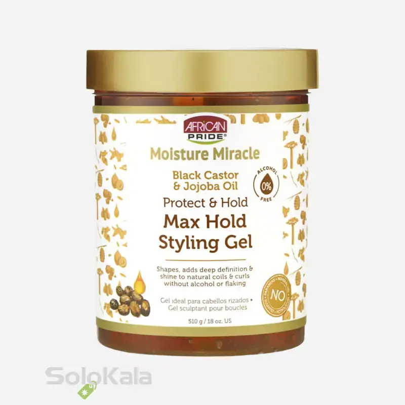 ژل مو آفریکن پراید مدل Miracle Max Hold Styling به لطف ترکیبات رطوبت‌رسان خود، موها را نرم و مرطوب نگه می‌دارد و برای استفاده در هوای مرطوب بسیار مناسب است. این محصول با قدرت حالت‌دهی بالا، به شما کمک می‌کند تا موهای خود را به شکل دلخواه حالت دهید و این حالت را تا مدت طولانی حفظ کنید. افرادی با موهای فر، پرپشت و حتی کسانی که موهایشان مستعد وز شدن است، می‌توانند از این ژل استفاده کنند.