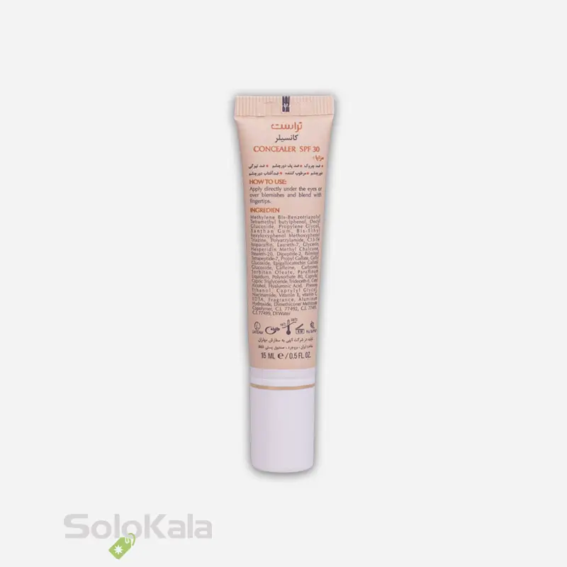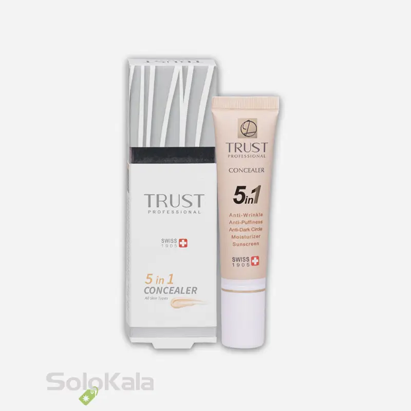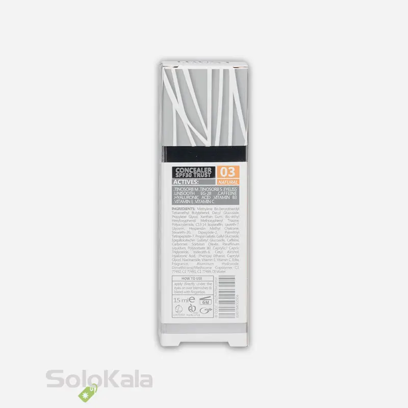 کانسیلر تراست با پوشش‌دهی قوی، سیاهی و پف زیر چشم را محو کرده و چین‌وچروک‌های صورت را کاهش می‌دهد. بافت سبک آن بدون ایجاد حس سنگینی، پوست را صاف و یکدست می‌کند. این محصول علاوه بر تکمیل آرایش، از پوست نازک اطراف چشم در برابر اشعه‌های مضر خورشید محافظت می‌کند. کانسیلر تراست در رنگ نچرال بژ (Natural Beige) عرضه شده است. برای نتیجه بهتر، روی پوست تمیز به شکل نقطه‌ای یا مثلثی استفاده شده و با انگشت یا براش محو شود.