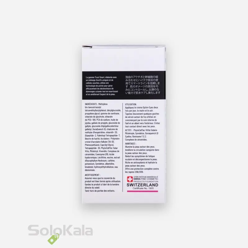 کرم برطرف کننده تیرگی و پف دور چشم تراست، به عنوان یک راه حل کامل و دوستدار پوست شناخته می‌شود. با فرمولاسیون منحصر به فرد خود متناسب با انواع پوست‌ها از پوست خشک تا چرب می‌باشد. کرم برطرف کننده تیرگی و پف دور چشم تراست علاوه بر کاهش تیرگی و پف، باعث تقویت و تحریک سلول‌های پوست می‌شود تا پوست شاداب و جوانی را باز یابد. استفاده‌ی دائمی از کرم برطرف کننده تیرگی و پف دور چشم تراست باعث کاهش چشمگیر تیرگی و پف دور چشم می‌شود و باعث ارتقا و بهبود پوست دور چشم می‌گردد.