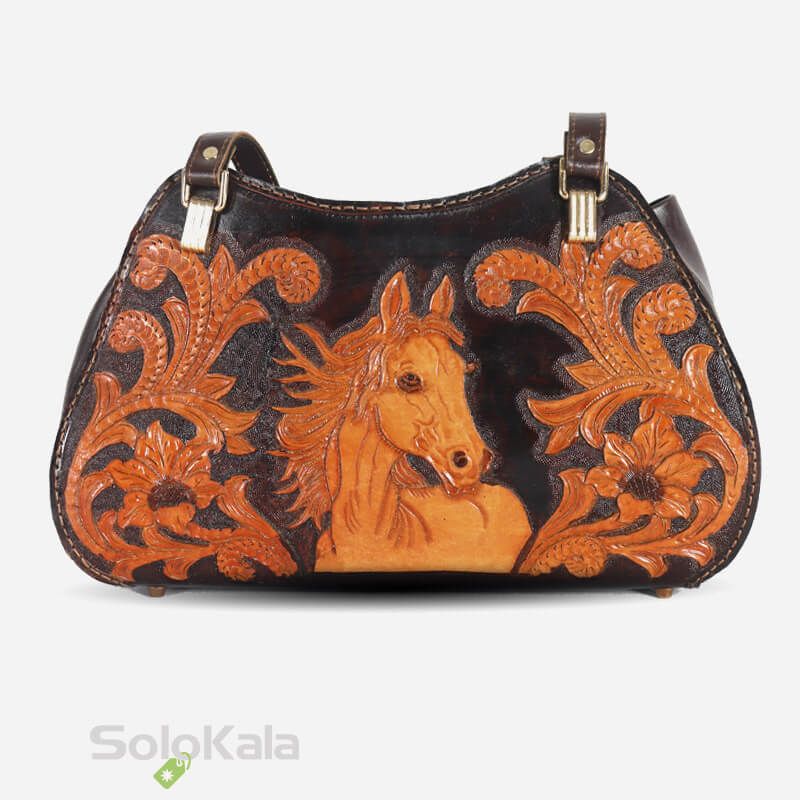کیف رودوشی قایقی قلم زنی زنانه چرم طبیعی مدل SL0867 با طرح قلم زنی اسب و انتخاب رنگ مناسب، یک حس خاصی به فرد میده و در نگاه اول هر شخصی رو شیفته زیبایی خودش میکنه. تمامی طراحی روی این کیف قلم زنی با هنر دست هست و بدون دخالت هرگونه ماشین آلات و یا دستگاه صنعتی درست شده. این کیف نسبتا سایز بزرگی داره و به همین دلیل هم خیلی جاداره.