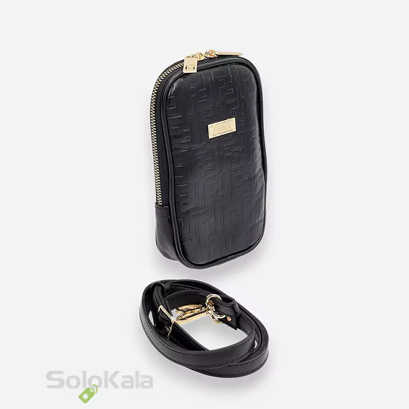 مشخصات ظاهری کیف موبایل مشکی طرح چرم FENDI